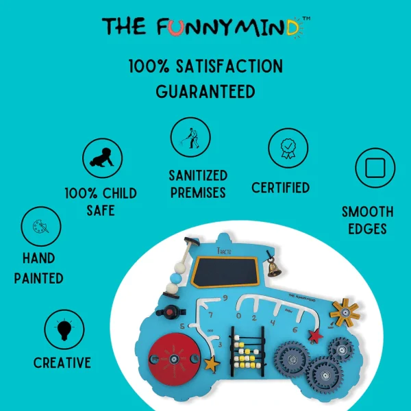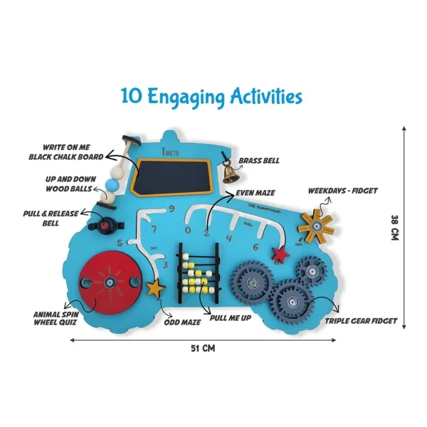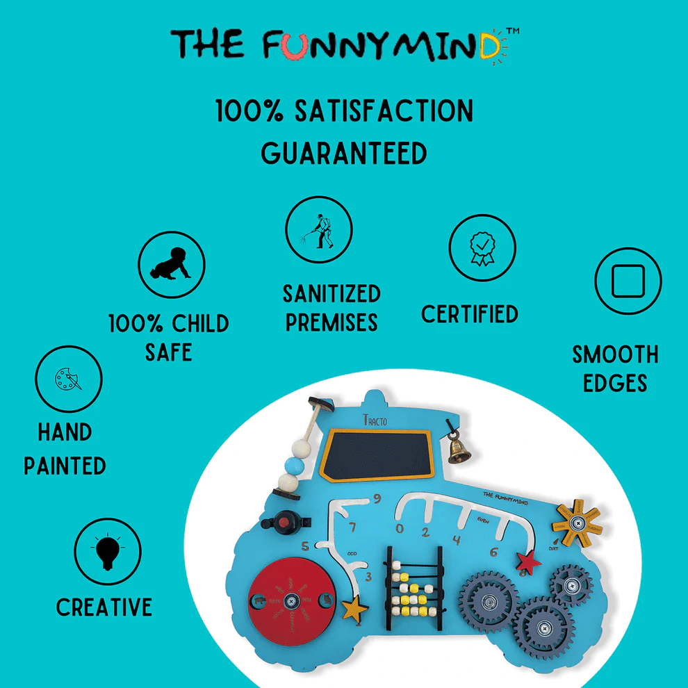 The Tracto busy board is one of its kind series of busy board launched ever in India by The Funny Mind. The busy board will keep your little ones busy all day long. They will love to play with the different activities on the busy board. The products used are of utmost quality keeping in mind the safety of the children. Like high quality Brass bell, special bicycle bell, special strings are used.